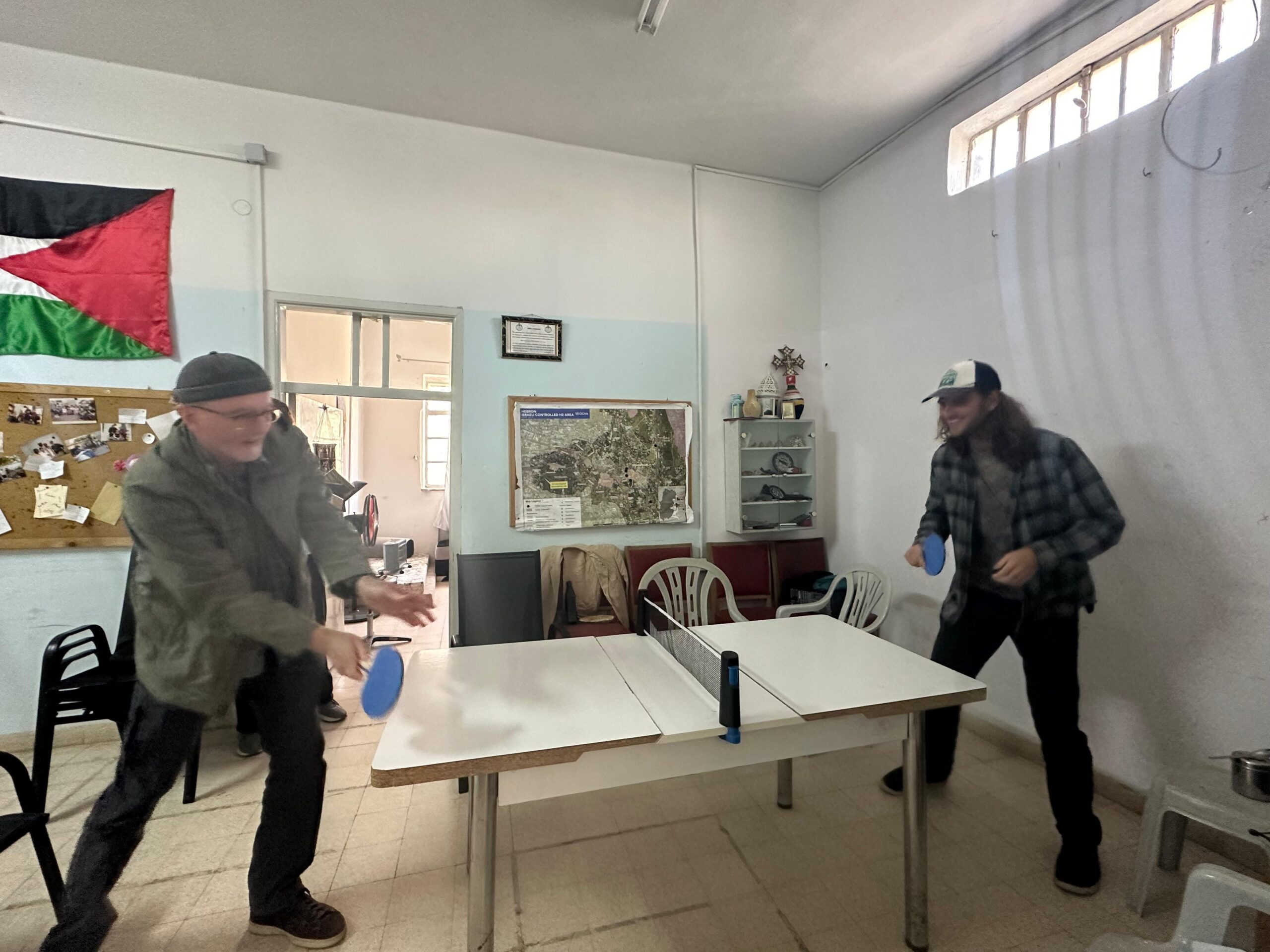 Over our first few days in Al Khalil, our hosts explained to us a complex set of instructions to stay safe. You can go on the roof, but make sure there are no drones or soldiers around on nearby rooftops. Don’t take pictures too close to checkpoints, don’t take pictures of soldiers or when soldiers are watching you. Avoid wearing clothing or jewelry expressing support for Palestine when crossing checkpoints. Be careful when walking on restricted roads, because settlers drive aggressively without regard for pedestrians. It is best to avoid eye contact with settlers and soldiers . . . that is what works best for us.